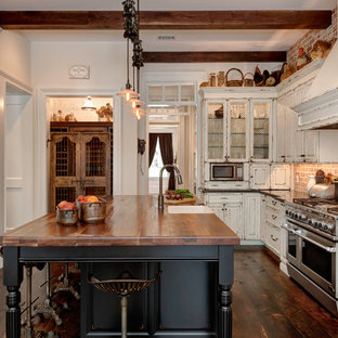 The dark wood and black brackets of the open shelves give a nice pop of contrast against the white wall. Therefore, paneled cabinets are perfect for this situation. This monochrome farmhouse kitchen utilizes barn board as racks to keep the utensils and cutlery on one space. Door styles in this kitchen. We have tackled some pretty crazy things together: